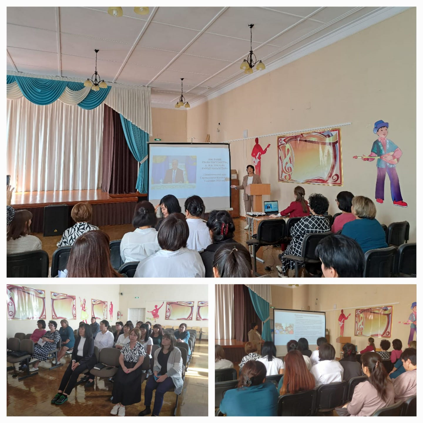 По основным направлениям Послания выступила учитель истории Кабылкаирова К.К. отметив важность Послания Президента и охват стратегических направлений дальнейшего развития страны. Состоялся обмен мнениями коллектива по аспектам качественной реализации задач Послания Президента РК в области образования и здоровья подрастающего поколения.