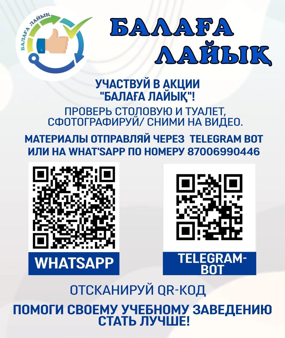 В Казахстане запустили республиканскую акцию по мониторингу школьных туалетов и столовых «Балаға лайық». Акция комитета по охране прав детей министерства образования и науки Казахстана проводится под лозунгом «Помоги школе стать лучше!». В ней могут принять участие школьники, волонтеры, детские представительства, педагоги, родители, представители неправительственных организаций.
