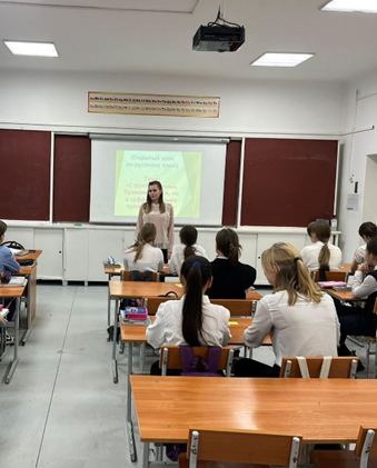 17 қарашада орыс тілі мен әдебиеті пәнінің мұғалімі Зарлыханова Сәуле Мухтаровна 8 "Г" сыныбында ашық сабақ өткізді.