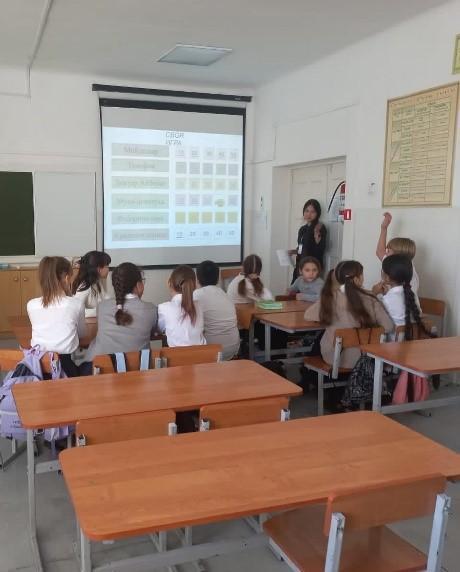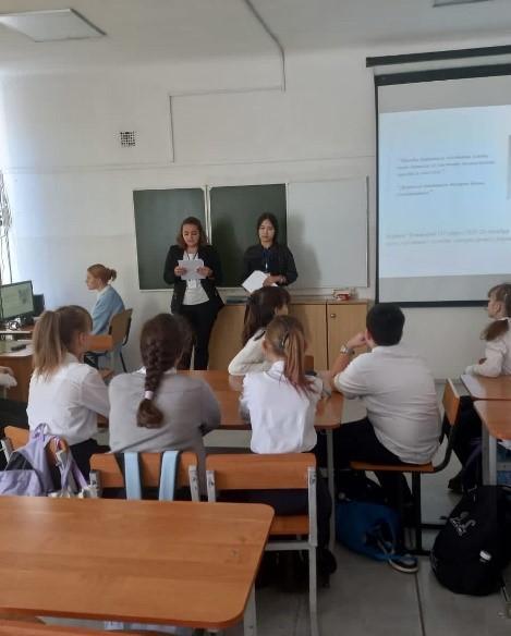 18 ноября учитель русского языка и литературы Зарлыханова С.М. провела в 8 «Б» классе устный журнал «Мудрый сын земли казахской», посвящённый 125-летию со дня рождения советского казахского писателя М.О. Ауэзова.