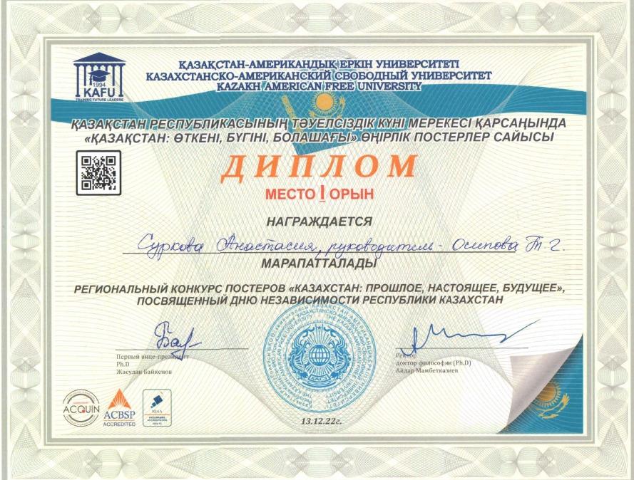 13 декабря 2022 года в Казахстанско-Американском свободном университете прошел Региональный Конкурс Постеров «Казахстан: прошлое, настоящее, будущее», посвященный Дню Независимости Республики Казахстан.