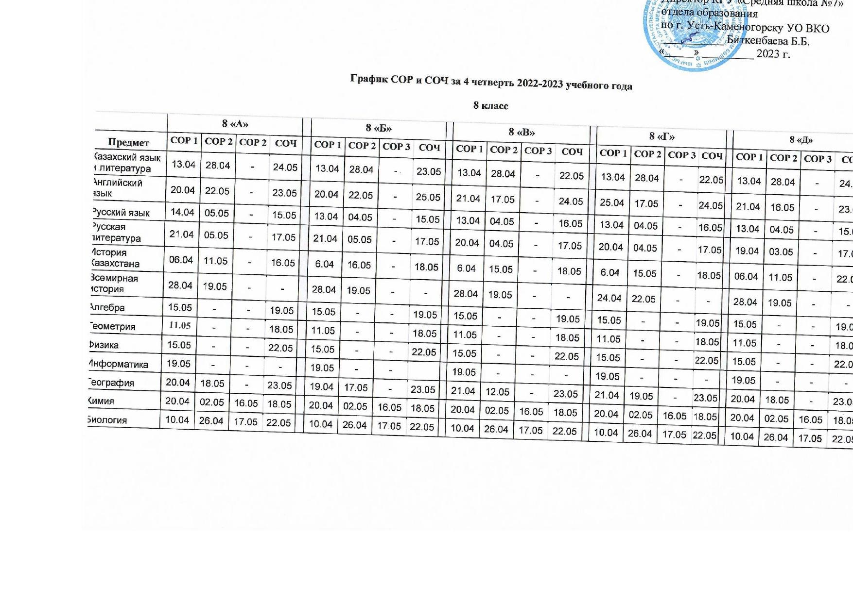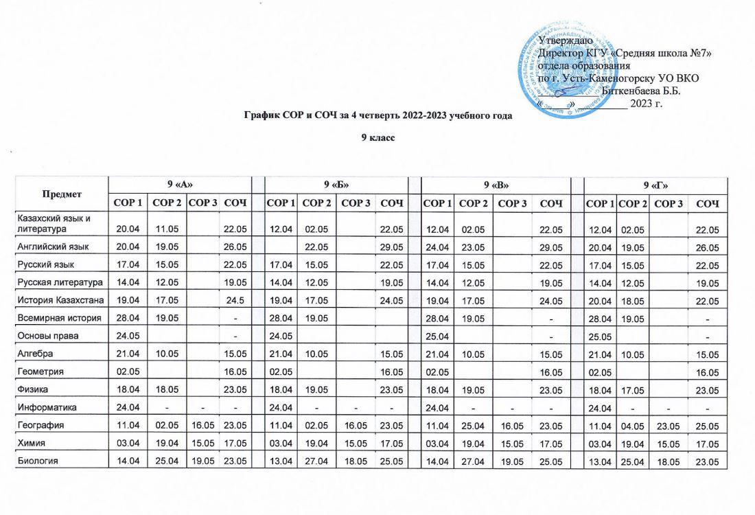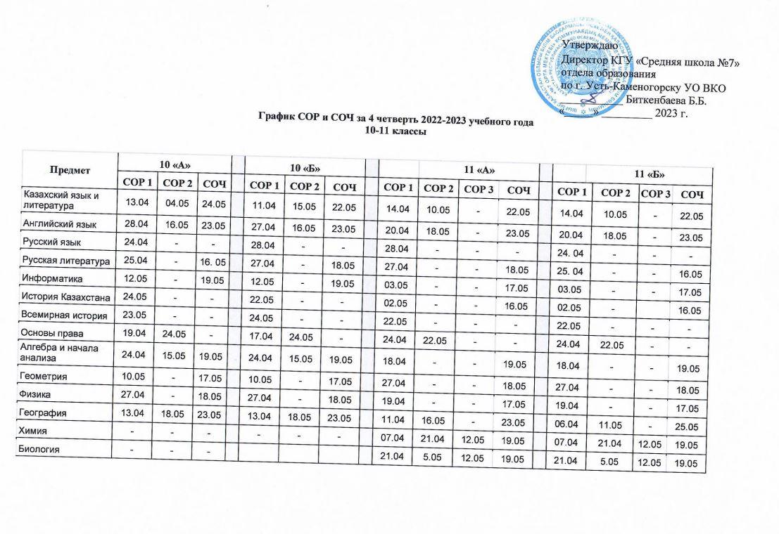 График СОР и СОЧ 4 четверть » №7 орта мектебі