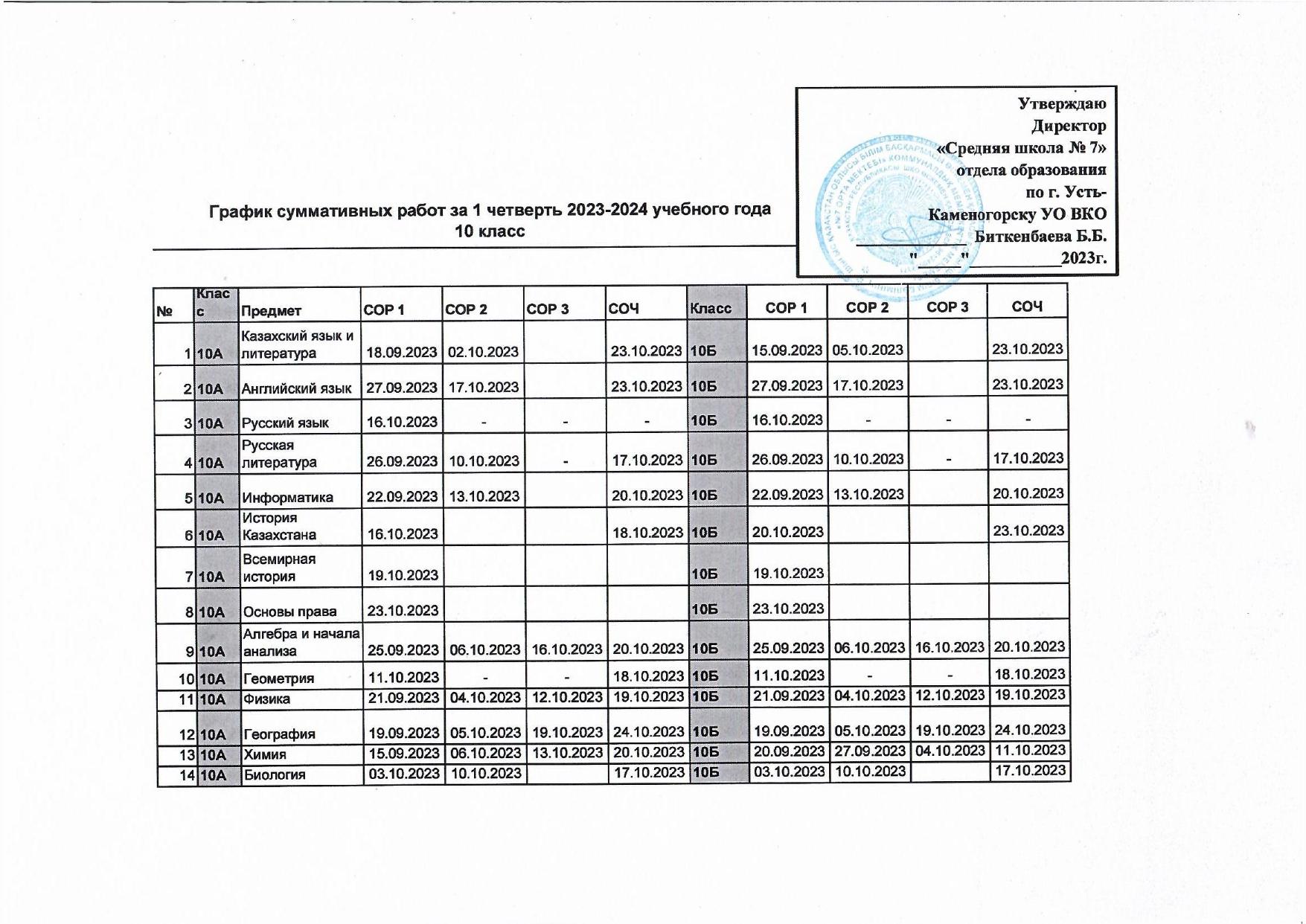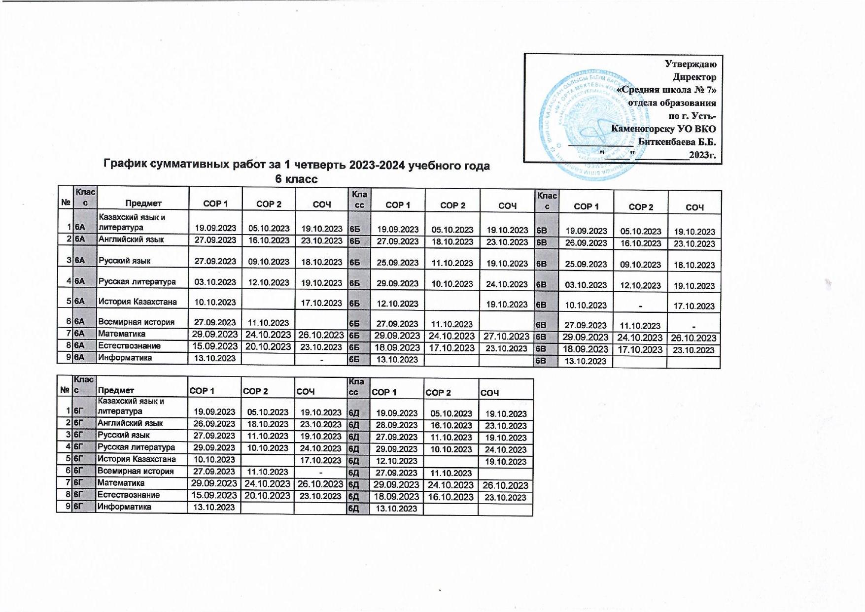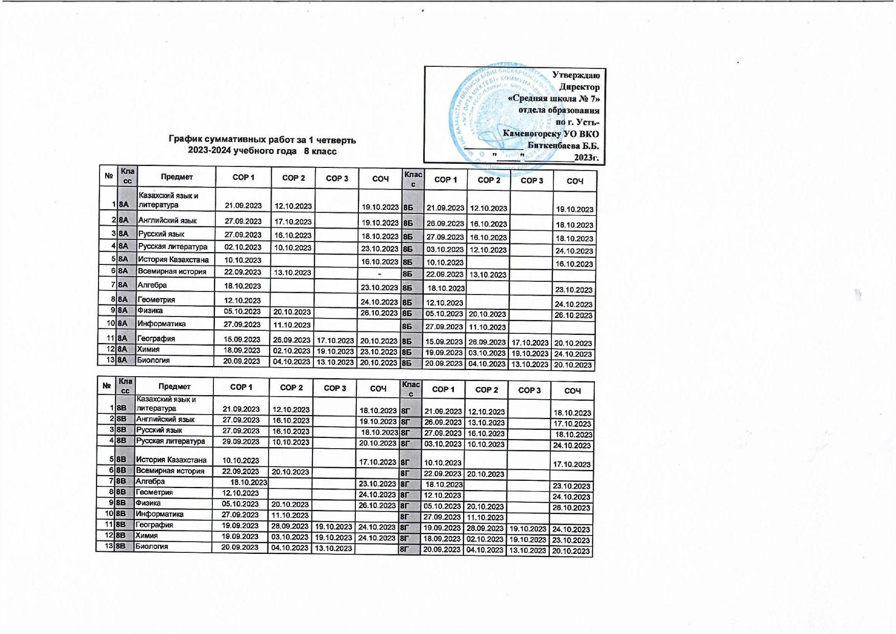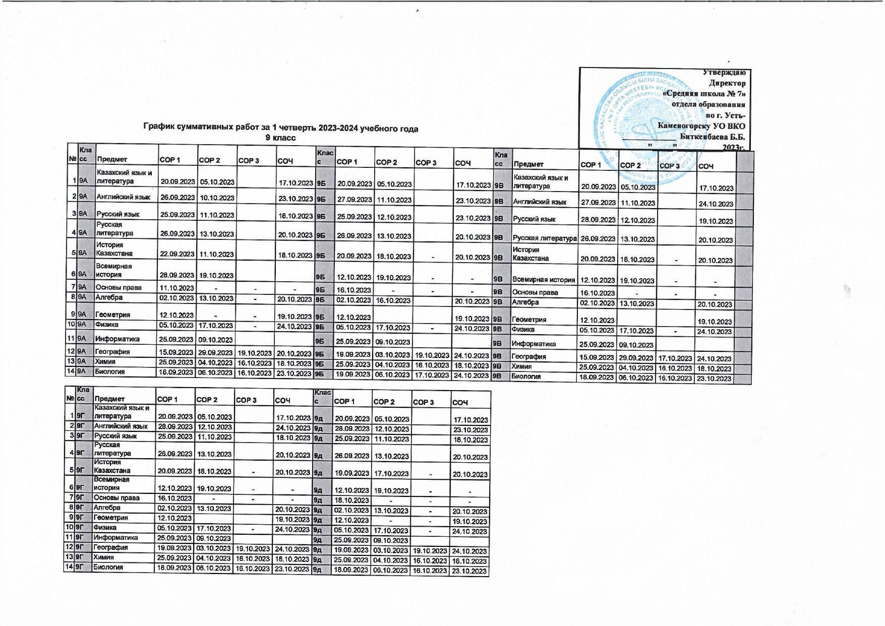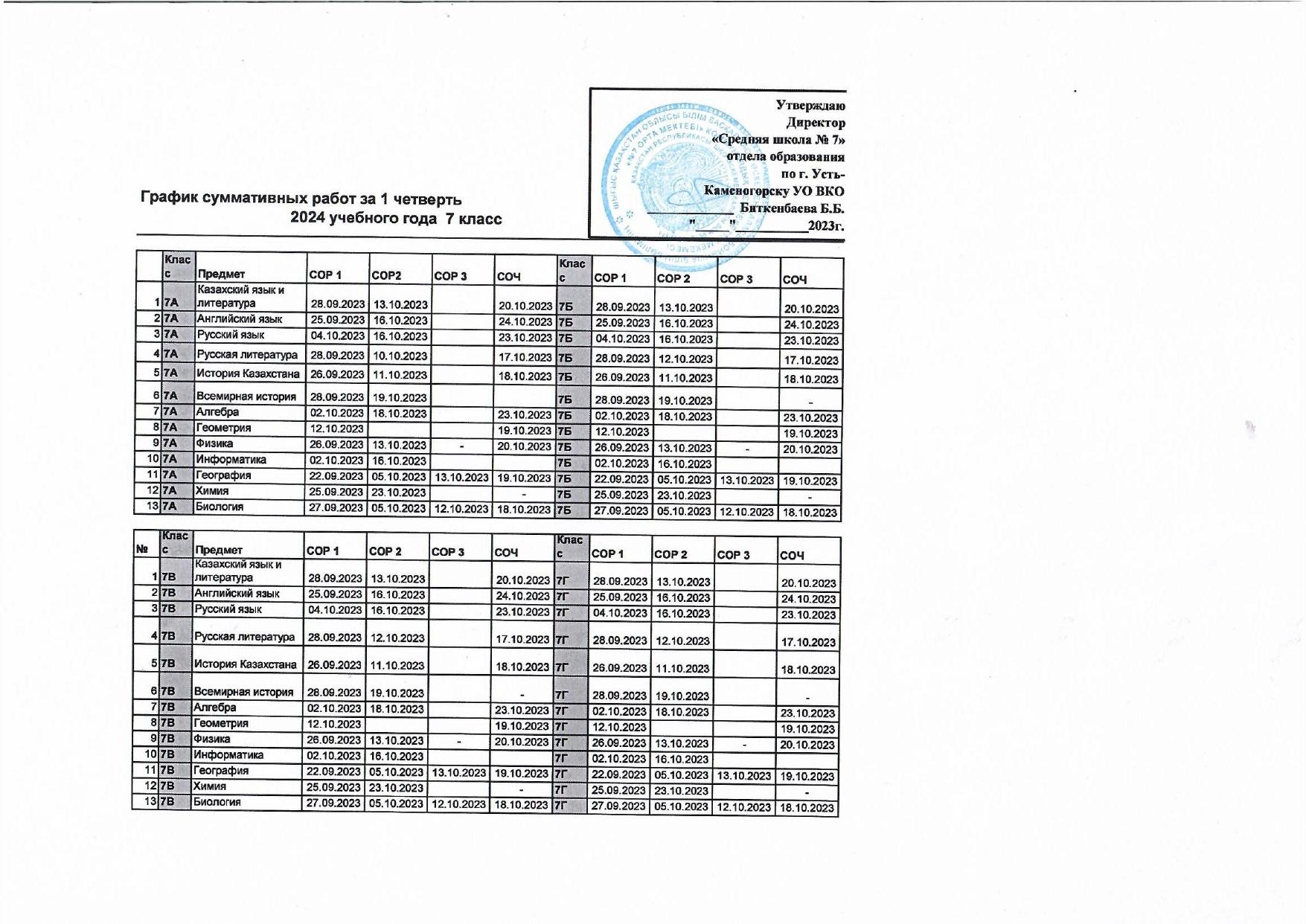 График СОР и СОЧ 1 четверть » №7 орта мектебі