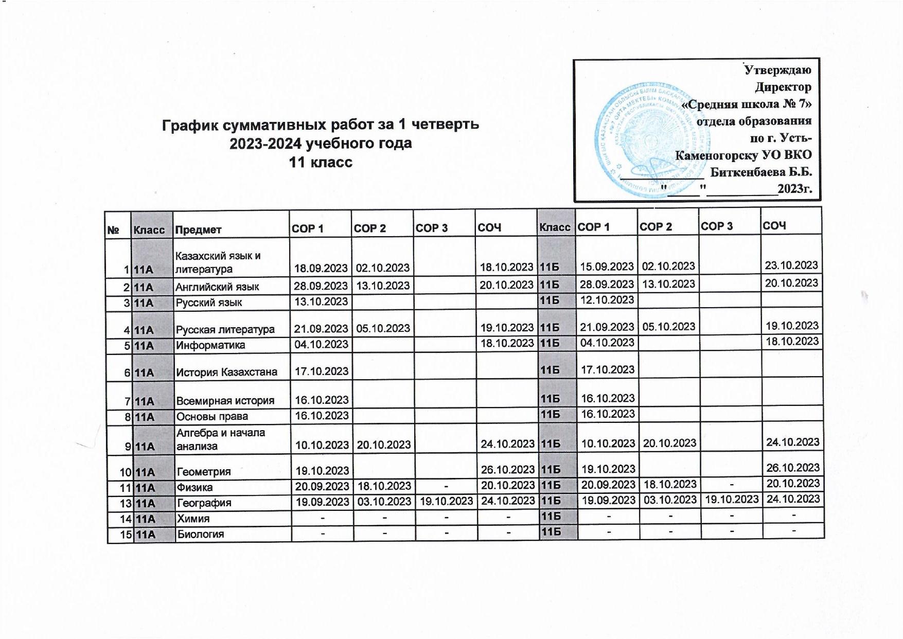 » » График СОР и СОЧ 1 четверть