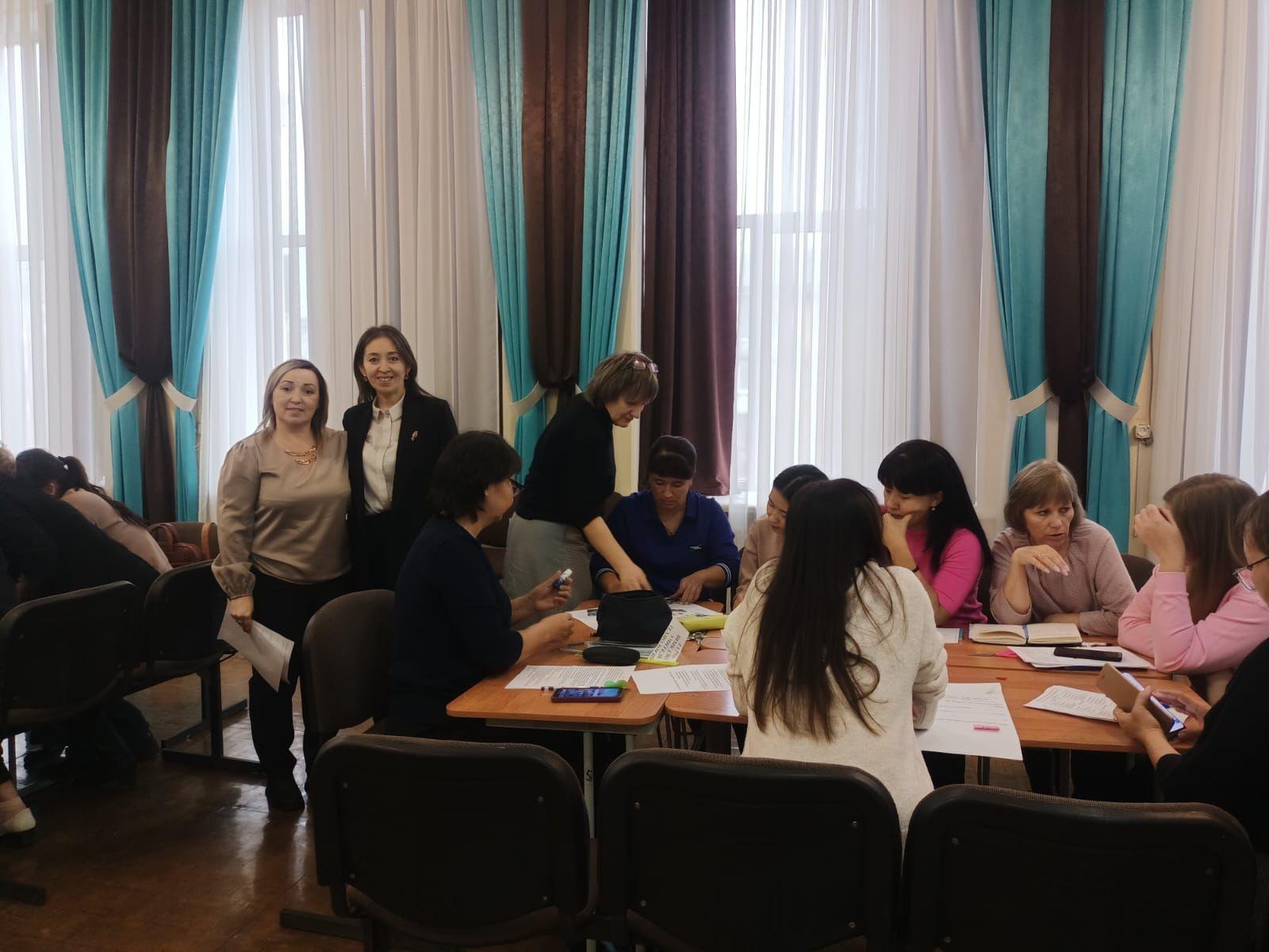По второму вопросу «Исследование урока Lesson Study как инструмент профессионального обучения» учитель биологии Калимуллина Е.Н. и учитель казахского языка и литературы Изгуттинова Р.Т. проверили тренинг. Цель тренинга: оказать содействие участникам занятия в понимании подхода Lesson Study и в применении данного метода в учебном процессе в целях улучшения качества преподавания.