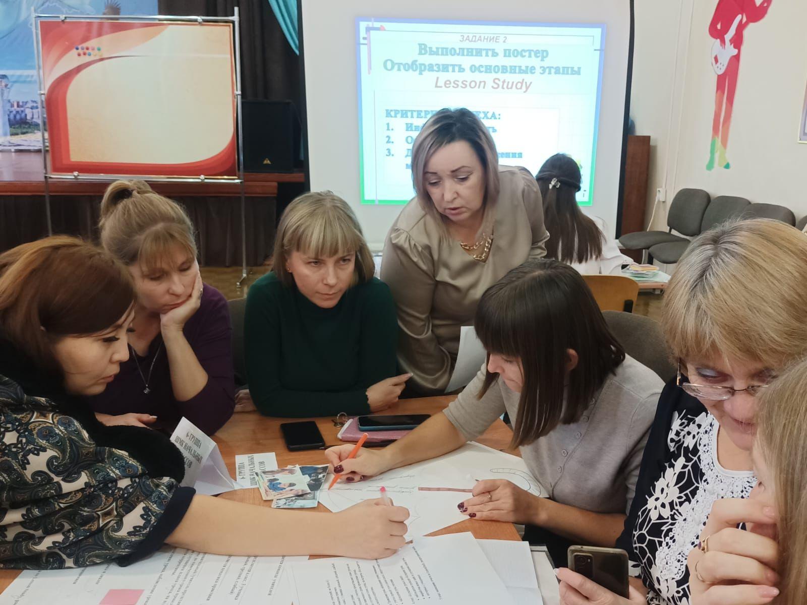 Тренинг барысында әр түрлі тапсырмалармен топтық жұмыс жүргізілді, онда мұғалімдер Lesson Study әдісінің орындалу кезеңдері мен ерекшеліктерін постерде көрсетуге, Lesson Study жұмысының кезеңдерін дұрыс орналастыру болды. Жиналғандардың барлығының жоғары белсенділігін атап өту керек. Сондай-ақ орындалған практикалық жұмыстарды өзара және өзін-өзі бағалау жүргізілді, бұл басқа топ жұмысының артықшылықтары мен кемшіліктерін және оларды түзету мүмкіндігін анықтауға көмектесті.