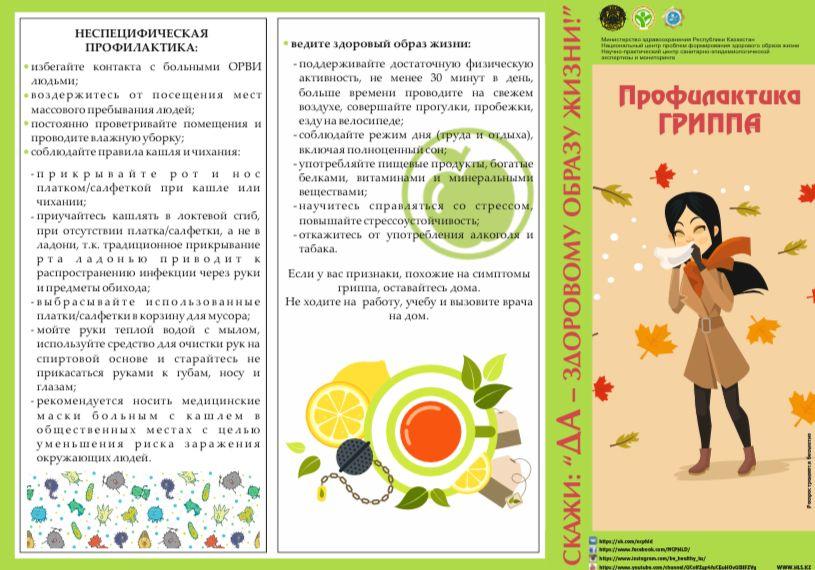 21 қараша 2023 0 1 2 3 4 5 Құрметті оқушылар мен ата-аналар! / Уважаемые учащиеся и родители! Тұмау және ЖРВИ-ның алдын алу жадынамасымен танысуыңызды сұраймыз. Барлығына денсаулық тілейміз! Өзіңізге және жақындарыңызға қамқорлық жасаңыз!Просим вас ознакомиться с памяткой профилактики гриппа и ОРВИ. Желаем всем крепкого здоровья! Берегите себя и своих близких!