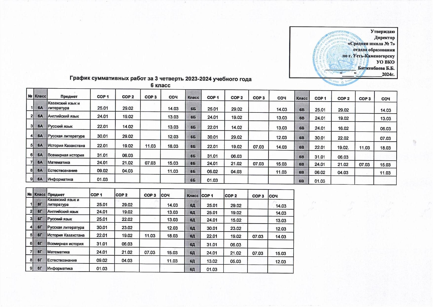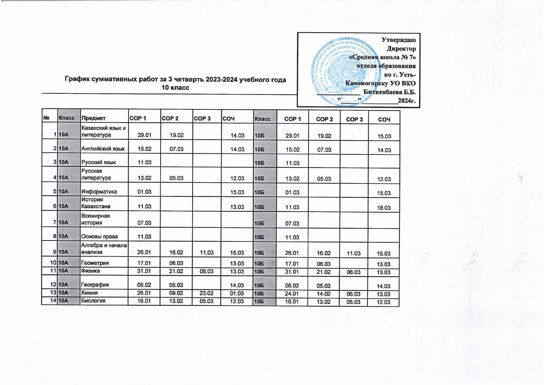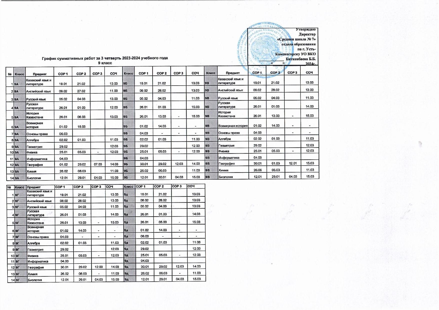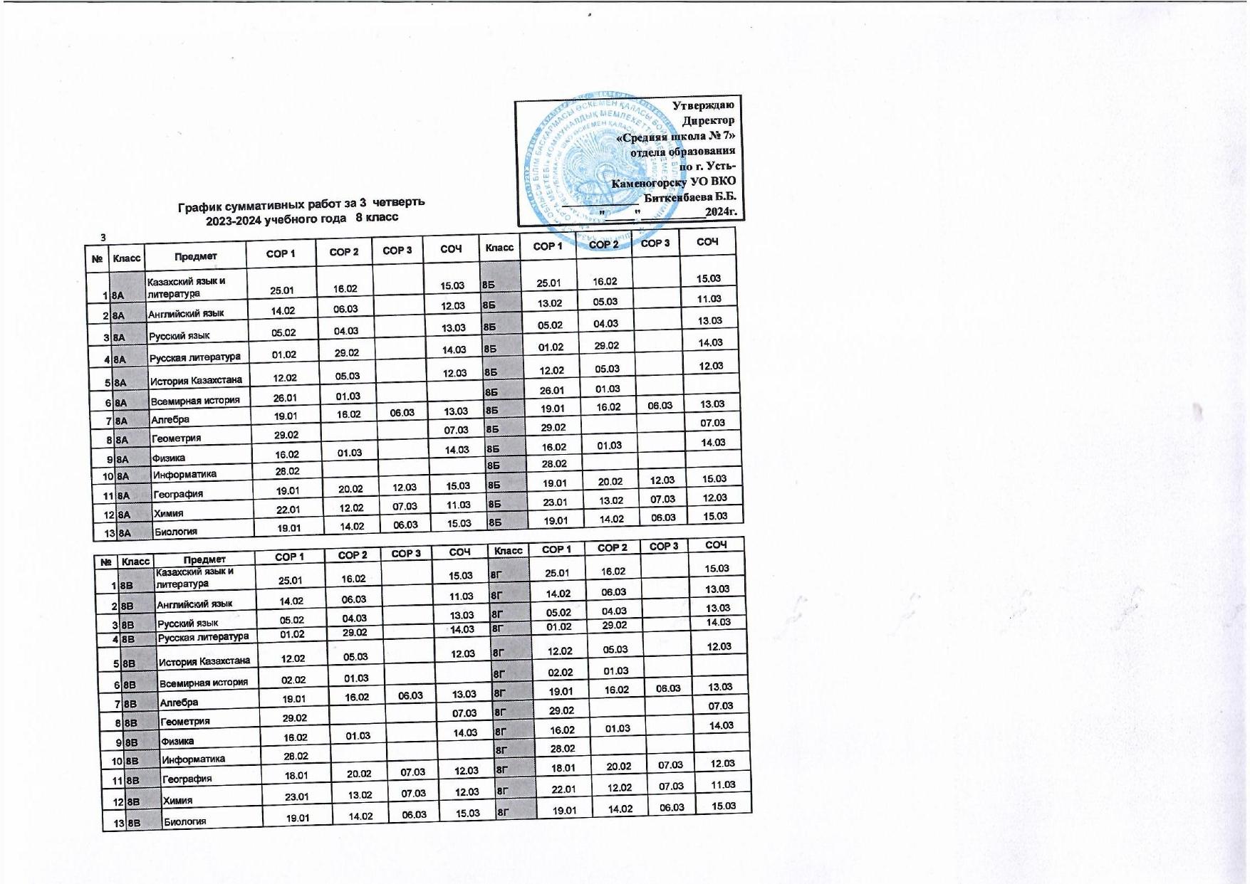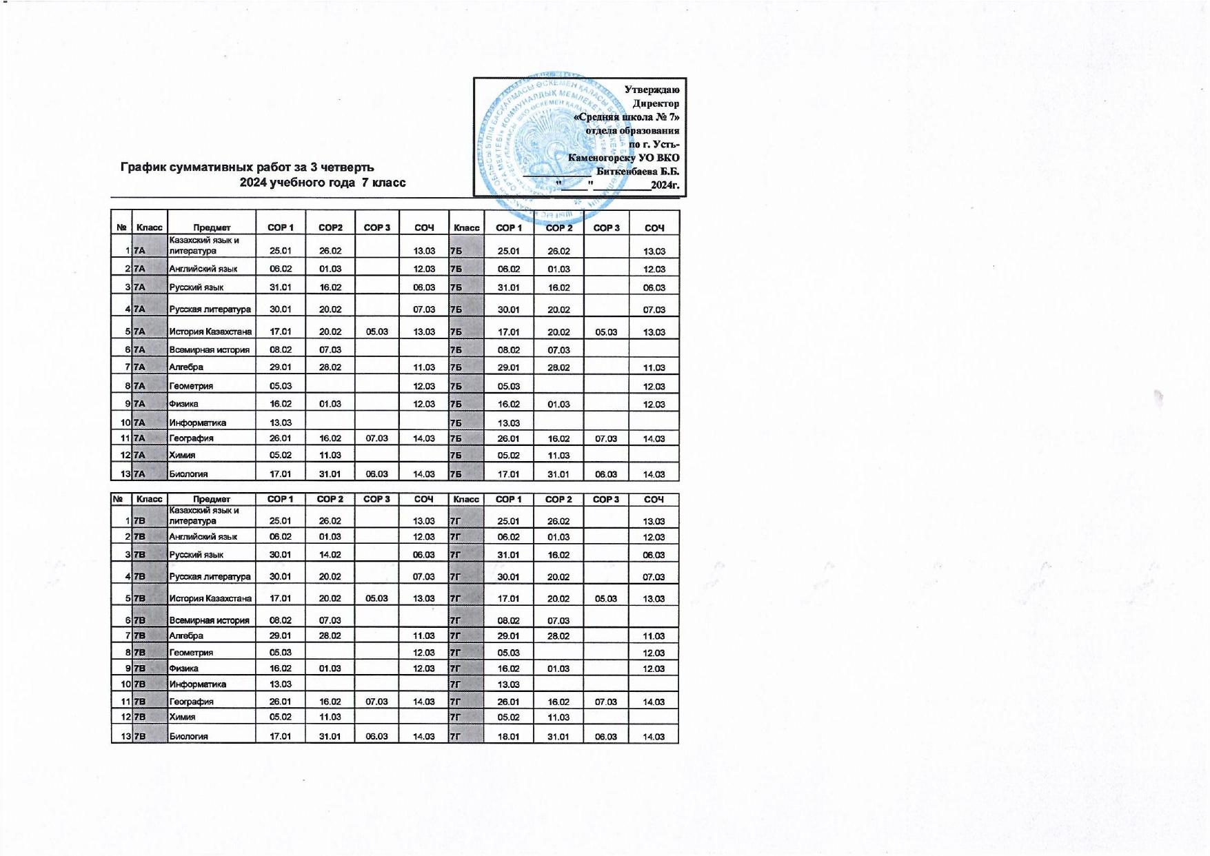 График СОР и СОЧ 3 четверть » №7 орта мектебі