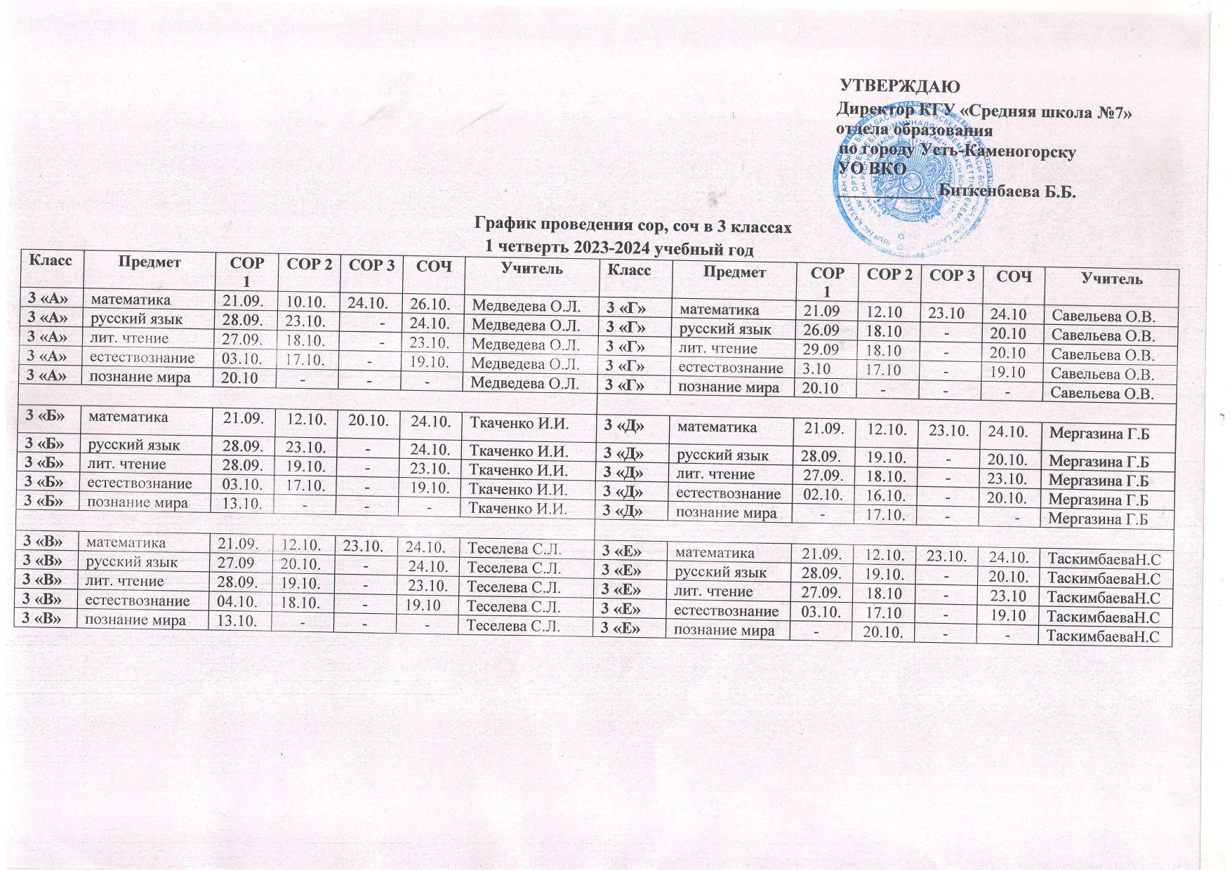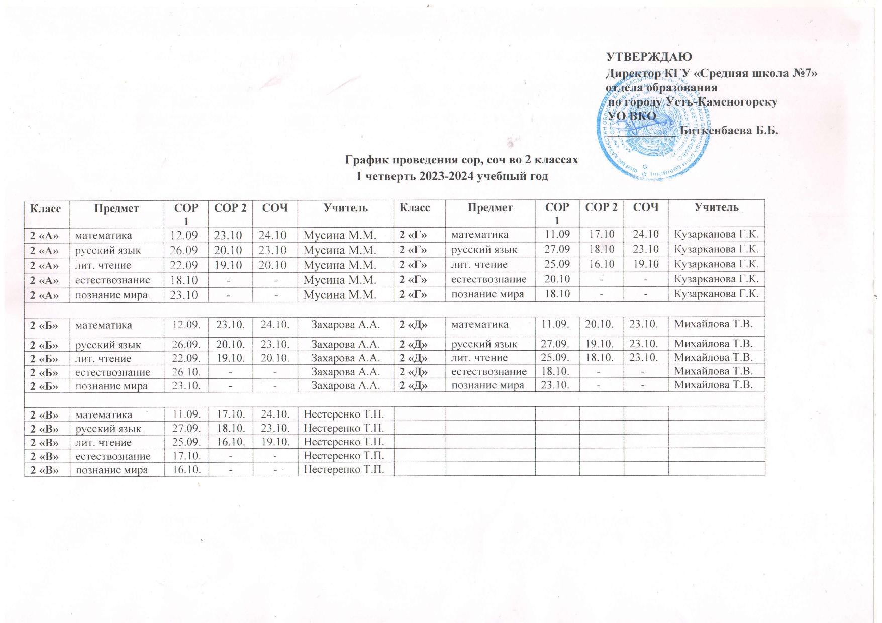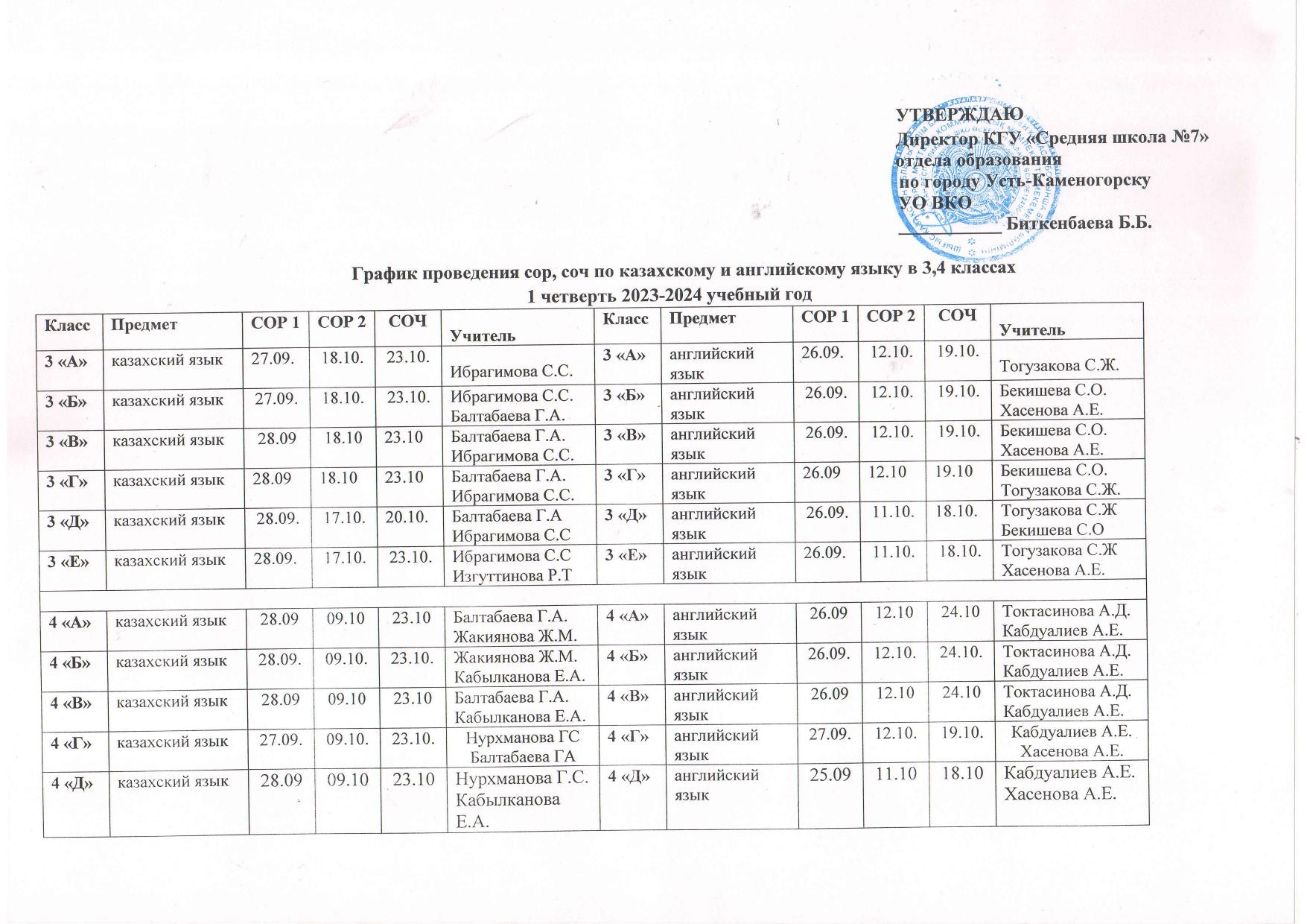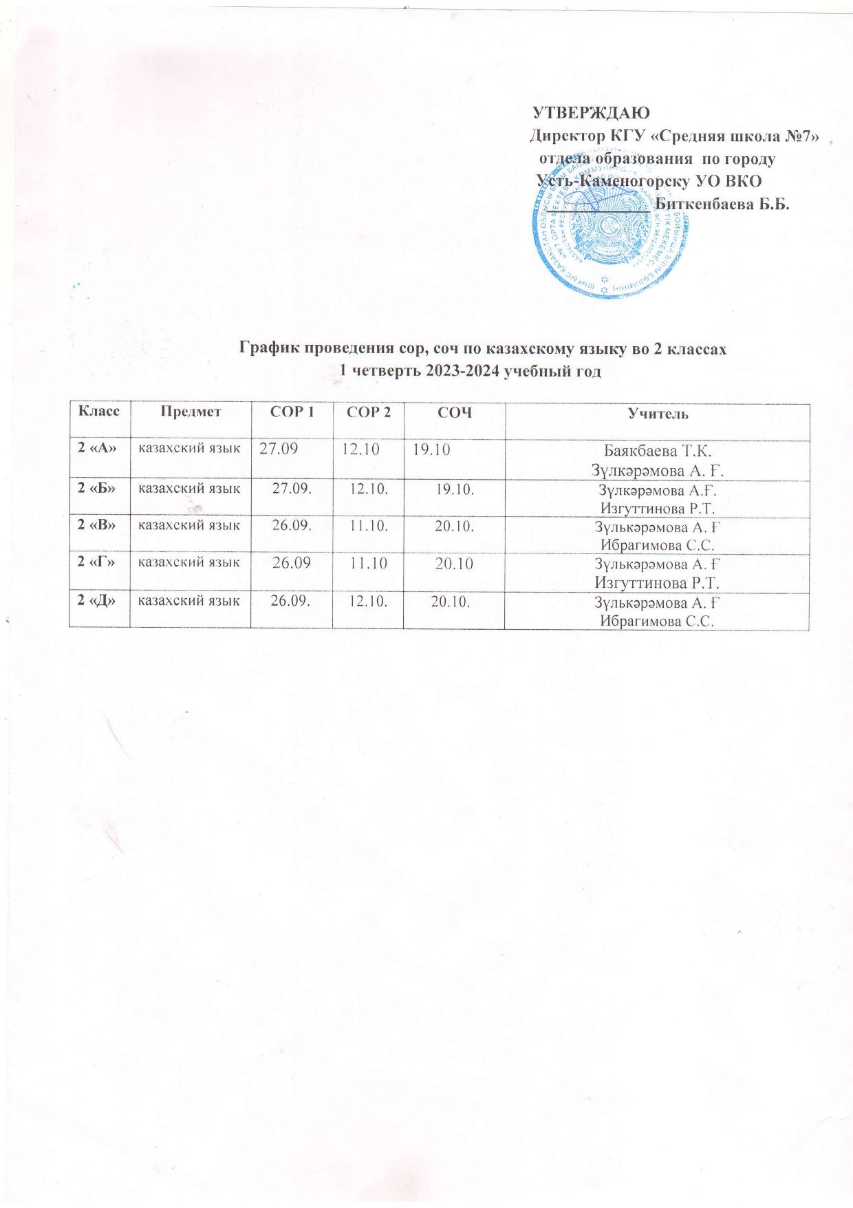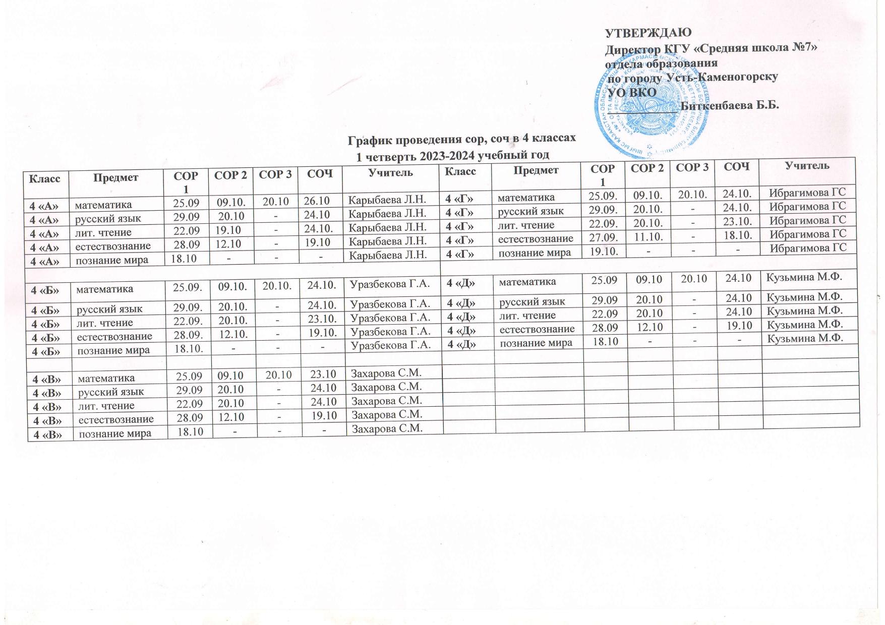 График СОР и СОЧ 1 четверть НШ » №7 орта мектебі