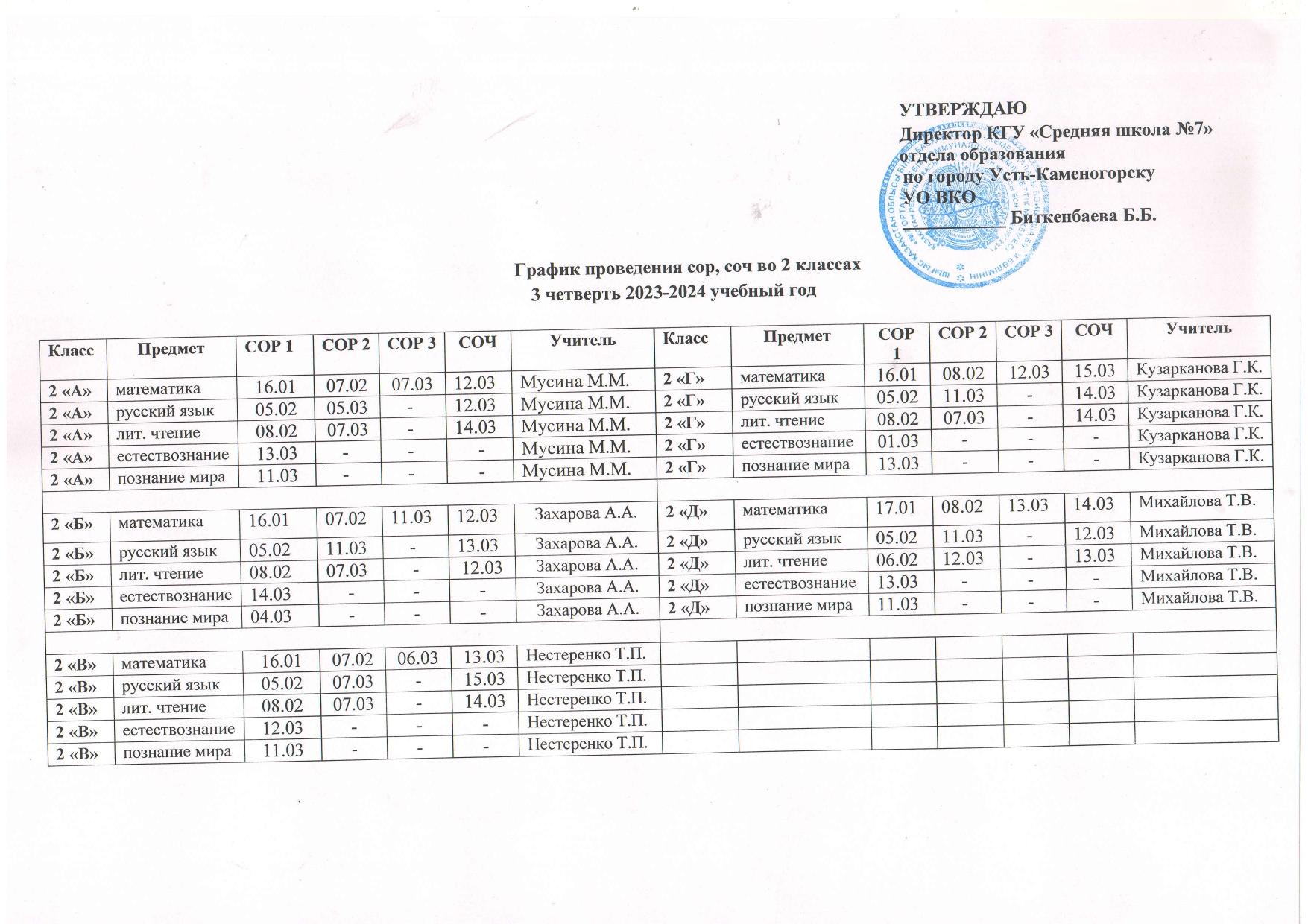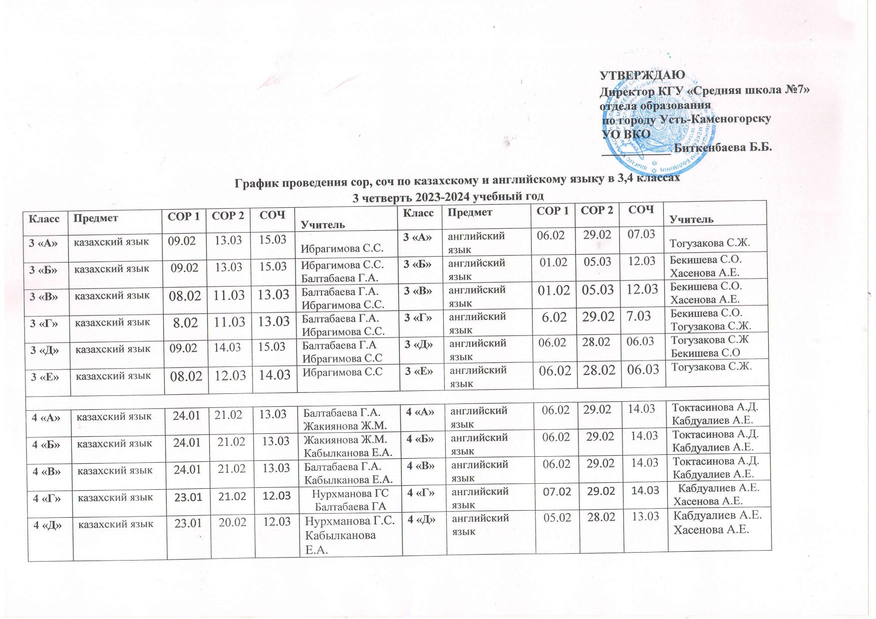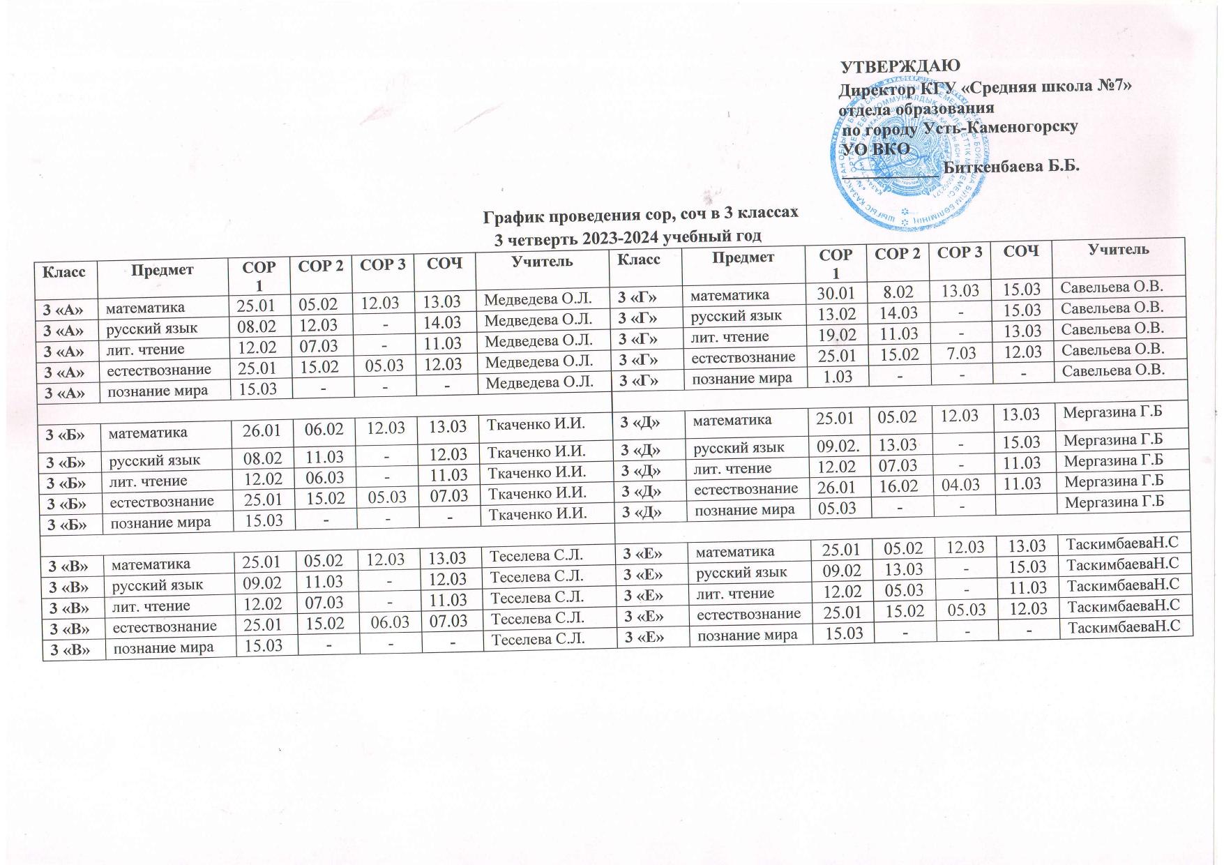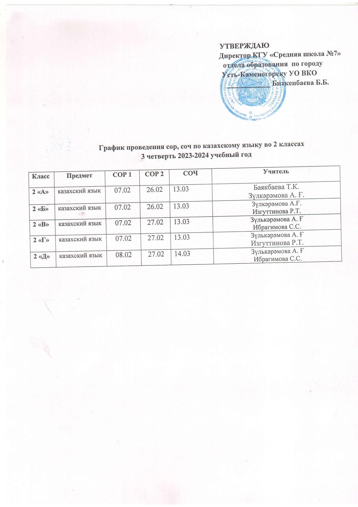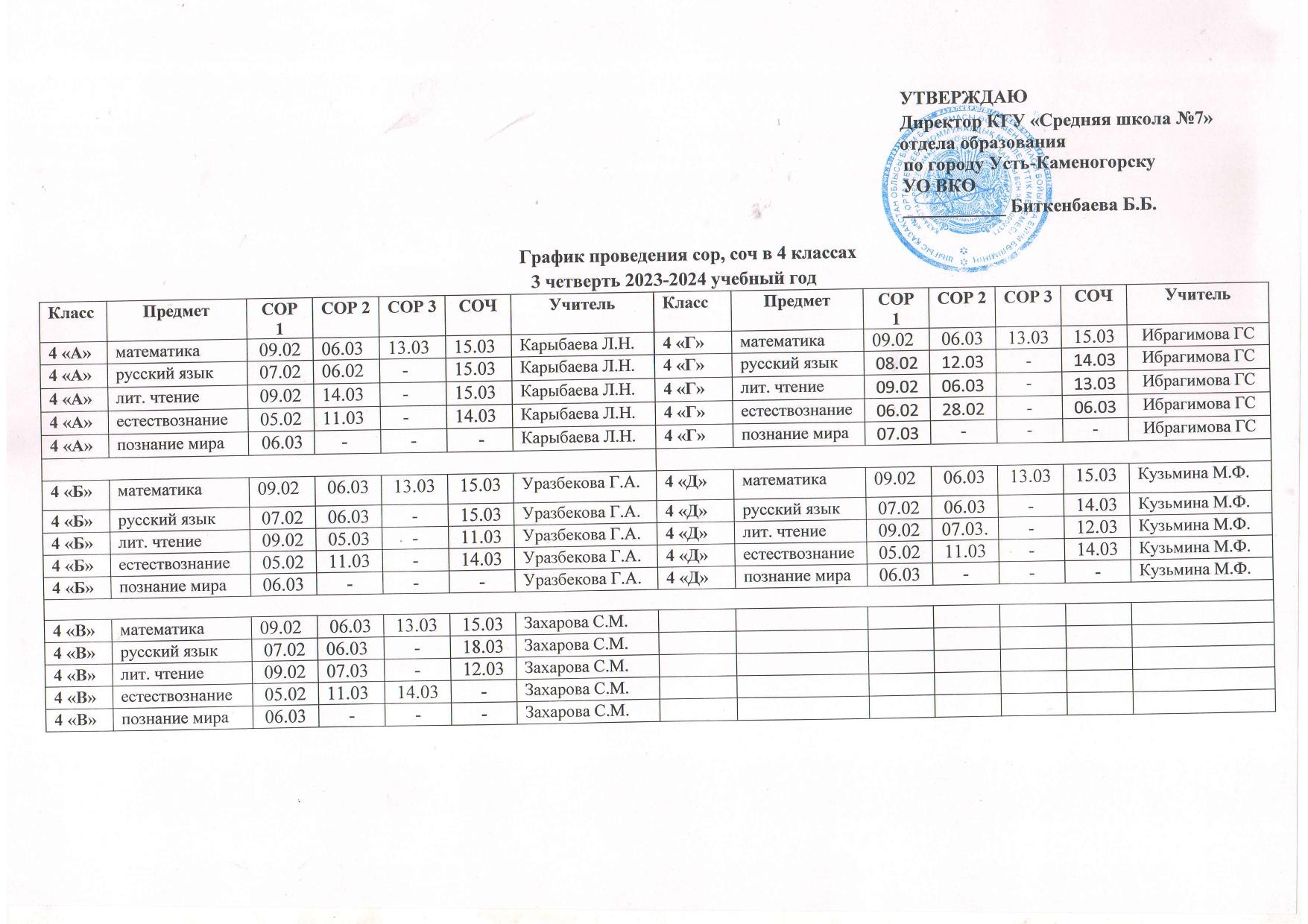 График СОР и СОЧ 3 четверть НШ » №7 орта мектебі