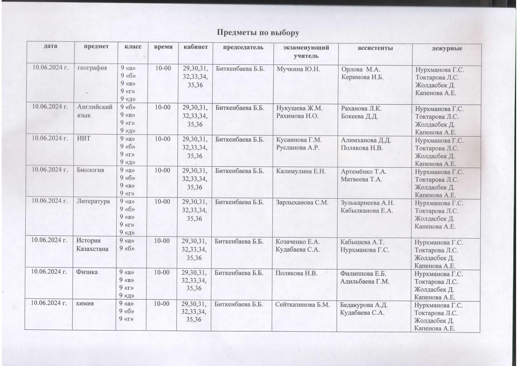 №7 орта мектебі » Ақпарат » График государственных выпускных экзаменов для обучающихся 9 классом за 2023 - 2024 учебный год