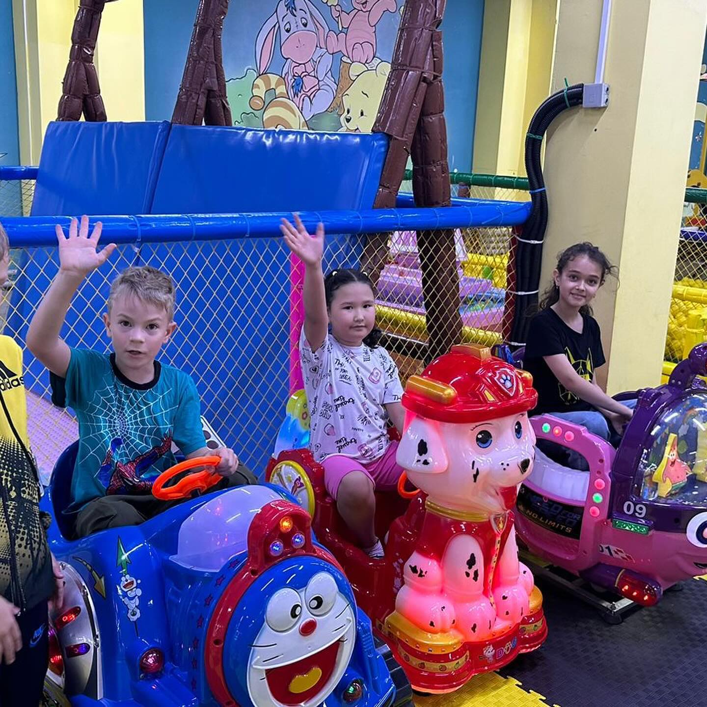 Оларды көптеген қызықты нәрселер күтті: әткеншекпен серуендеу, жартасқа өрмелеу, үстел ойындары, автокөлікпен жүру, батутта секіру.
