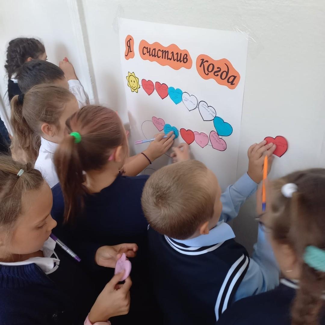 11-12 сентября 2024 года в школе была проведена акция "Мир в позитиве", приуроченная ко Всемирному дню предотвращения суицида. Акция способствует созданию положительного эмоционального фона в школе, улучшению настроения и позитивному отношению к жизни. Акция началась с Радуги настроения, на которой учащиеся и педагоги делились своим утренним настроением и улыбкой.В ходе акции учащиеся смогли получить волшебные пожелания в виде скрытых объявлений, поучаствовать в создании постера "Мы голосуем за жизнь", и создании гирлянды "Я счастлив, когда..." Дети активно и с удовольствием участвовали в мероприятиях, получили заряд позитива и хорошего настроения.