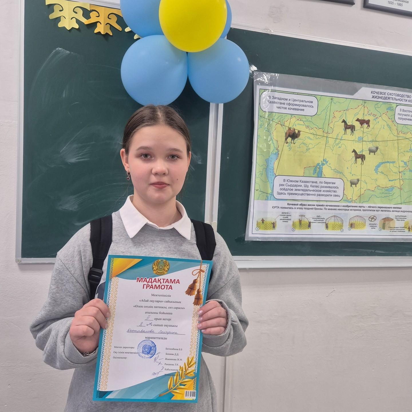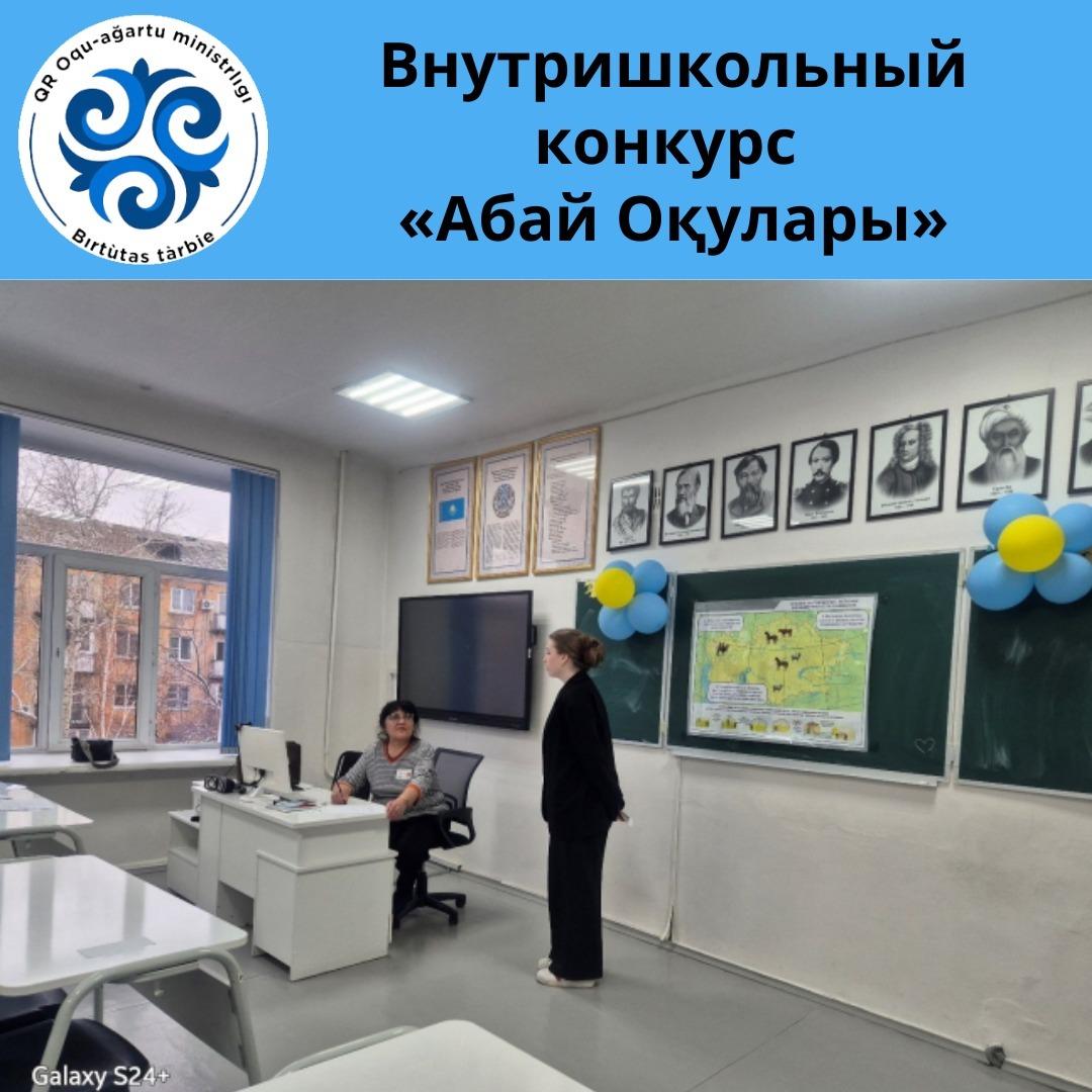 22.11.2024 года в стенах школы был организован и проведен конкурс «Абай оқулары». Конкурс проводился по 6 номинациям («Өлең - сөздің патшасы, сөз сарасы», «Абайдың қара сөздері», «Абайдың ақын шәкірттерінің шығармалары», «Өзге ұлт өкілдерінің өлең оқуы», «Көңілім әнді ұғады», «Ұлылар әлемі»). В каждой номинации приняли участие 32 ученика разных классов.