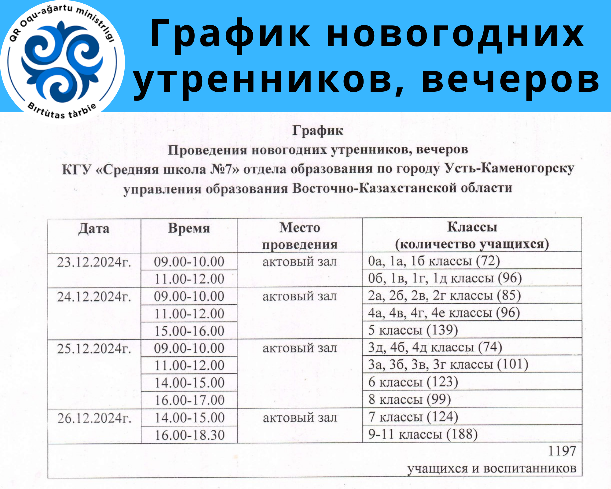 График школьных новогодний утренников, вечеров » №7 орта мектебі