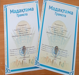 Среди учащихся 7-х классов был организован  онлайн-конкурс   выразительного чтения отрывков из  произведений казахских и русских, советских  писателей    «Думы о Родине», посвящённый 30-летию   Независимости Казахстана (ответственный учитель Зарлыханова С.М.).  Учащиеся читали отрывки из произведений М. Шаханова, Г. Мусрепова, О. Сулейменова, К. Паустовского, А. Толстого, М. Пришвина, Ч. Айтматова и записали  своё выступление на видео.