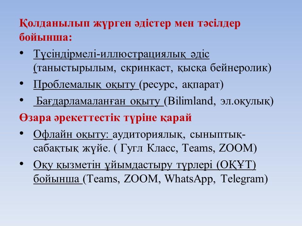 №7 орта мектебі » Біз туралы » Әдістемелік жұмыстар » «ҚАШЫҚТЫҚТАН ОҚЫТУ ЖАҒДАЙЫНДА ҚАЗАҚ ТІЛІ МЕН ӘДЕБИЕТІ САБАҚТАРЫНДА ОҚУШЫЛАРДЫҢ ОҚУ ДАҒДЫЛАРЫН ҚАЛЫПТАСТЫРУ ЖӘНЕ ДАМЫТУ ЖОЛДАРЫ»