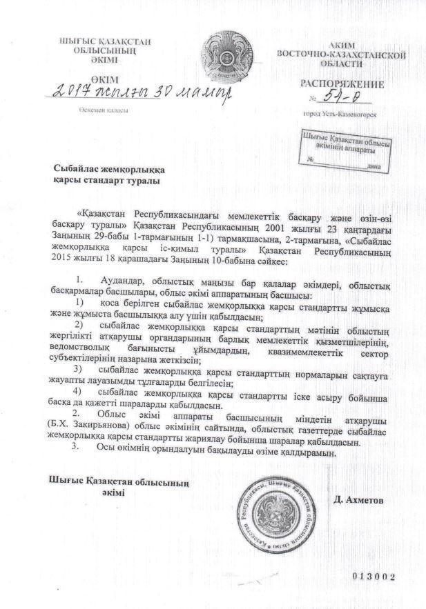 » » » Сыбайлас жемқорлыққа қарсы стандарт