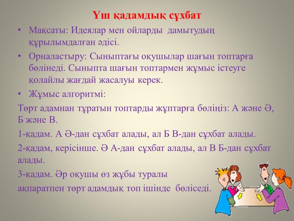 №7 орта мектебі » Біз туралы » ШМК » «Қазақ тілі және әдебиеті сабақтарында оқушылардың білімін қалыптастыратын әдістемелік тәсілдердің тиімділігі»