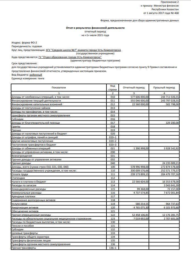 Отчет о результатах финансовой деятельности » №7 орта мектебі