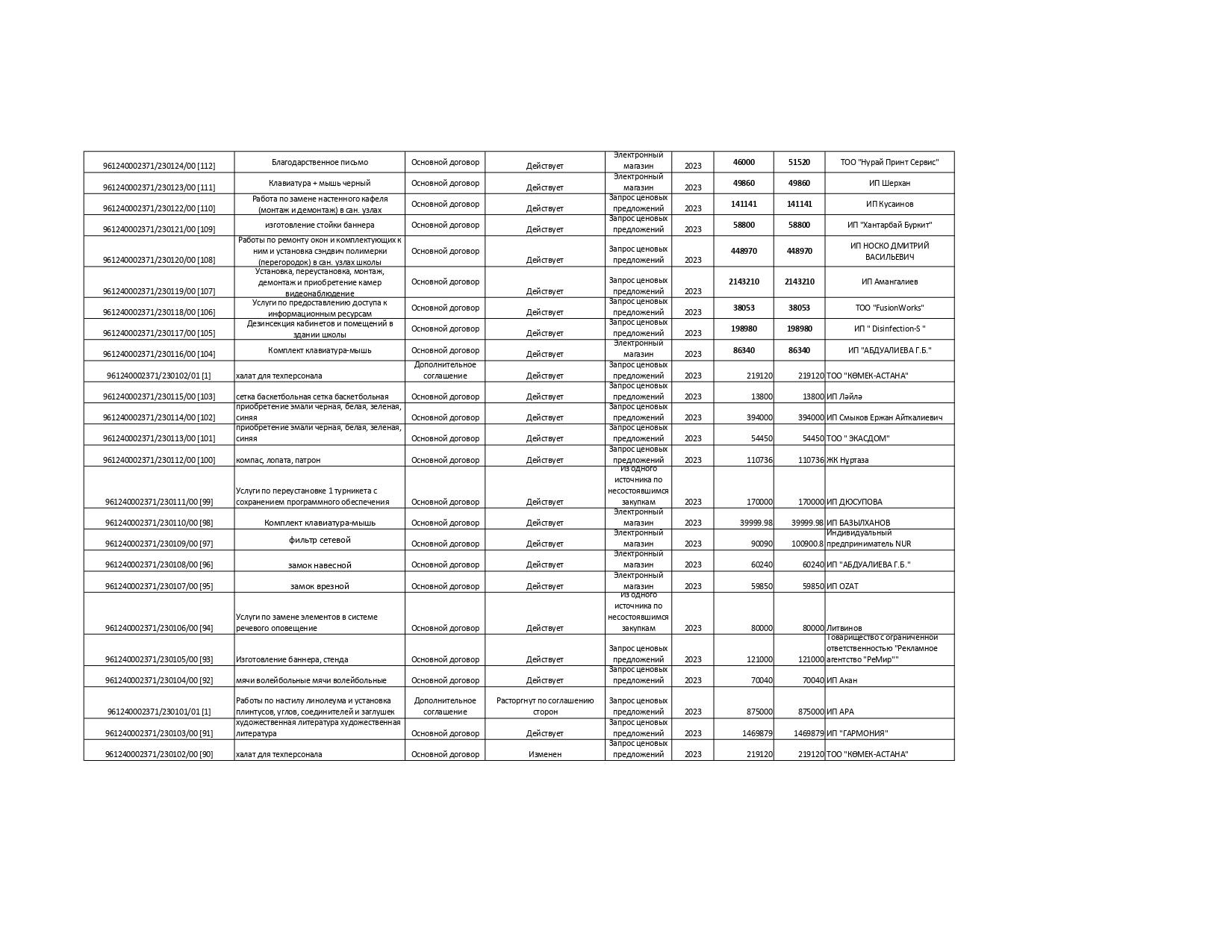 План государственных закупок на 2023 год » №7 орта мектебі