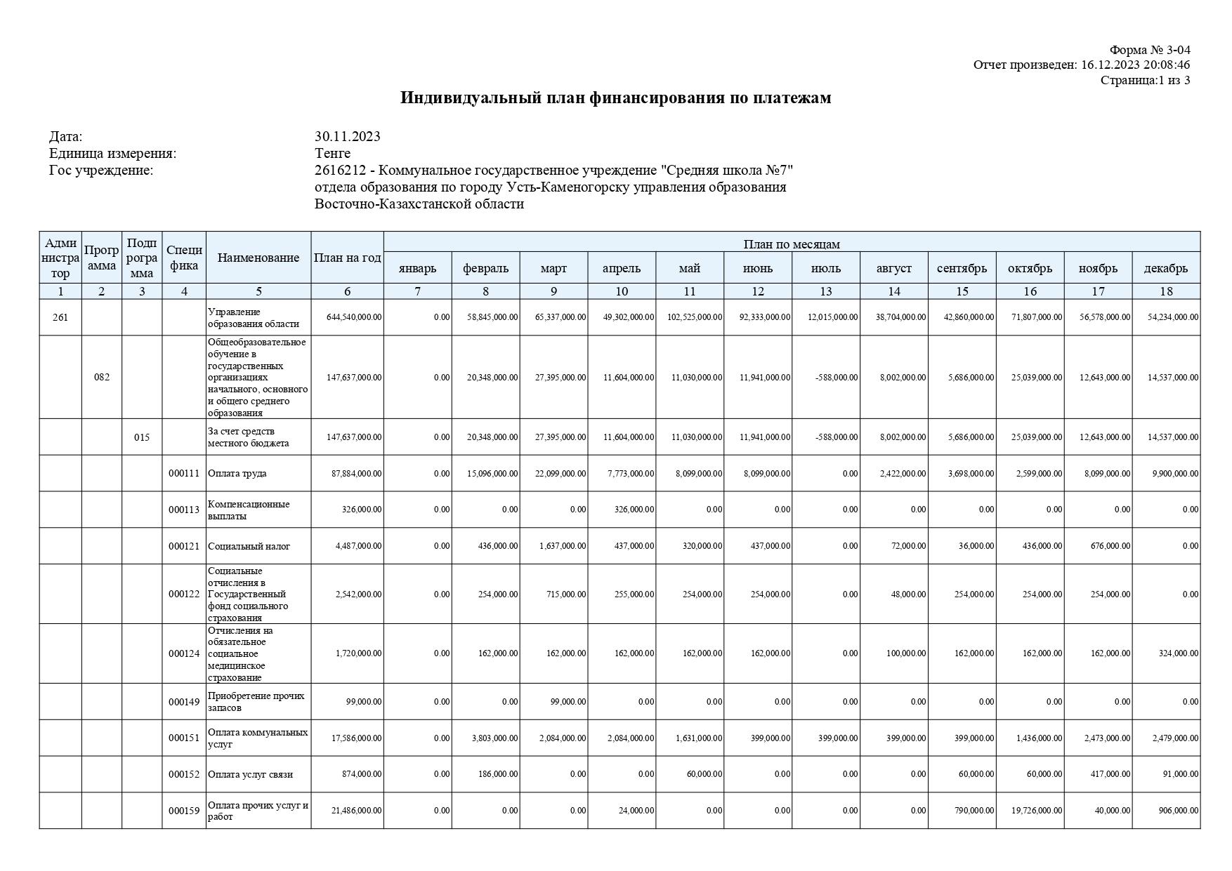 Индивидуальный план финансирования по платежам на 2023 год » №7 орта мектебі