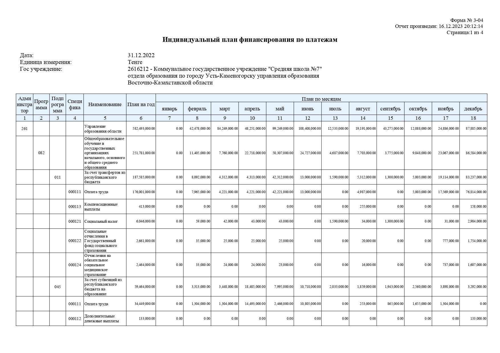 Индивидуальный план финансирования по платежам на 2022 год » №7 орта мектебі