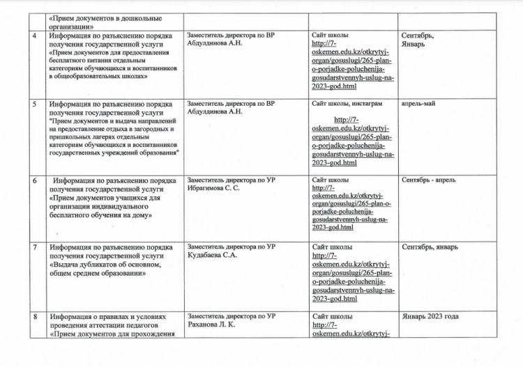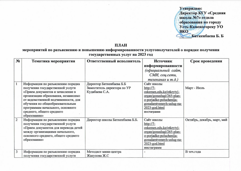 План мероприятий по разъяснению гос.услуг 2023 год. » №7 орта мектебі