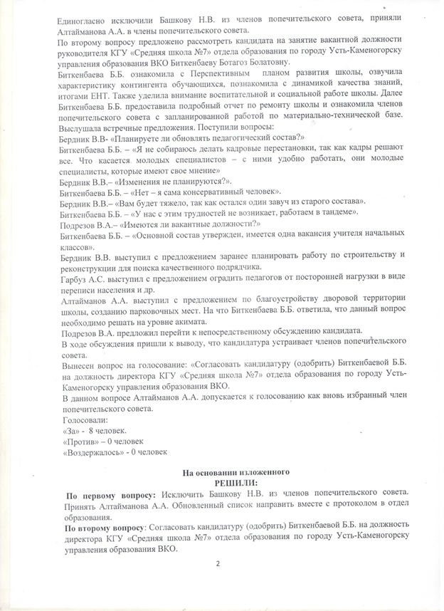 №7 орта мектебі » Ашық орган » Қамқоршылық кеңес » 11.10.2021. Протокольное решение по итогам собеседования с кандидатами на занятие вакантной должности руководителя организации