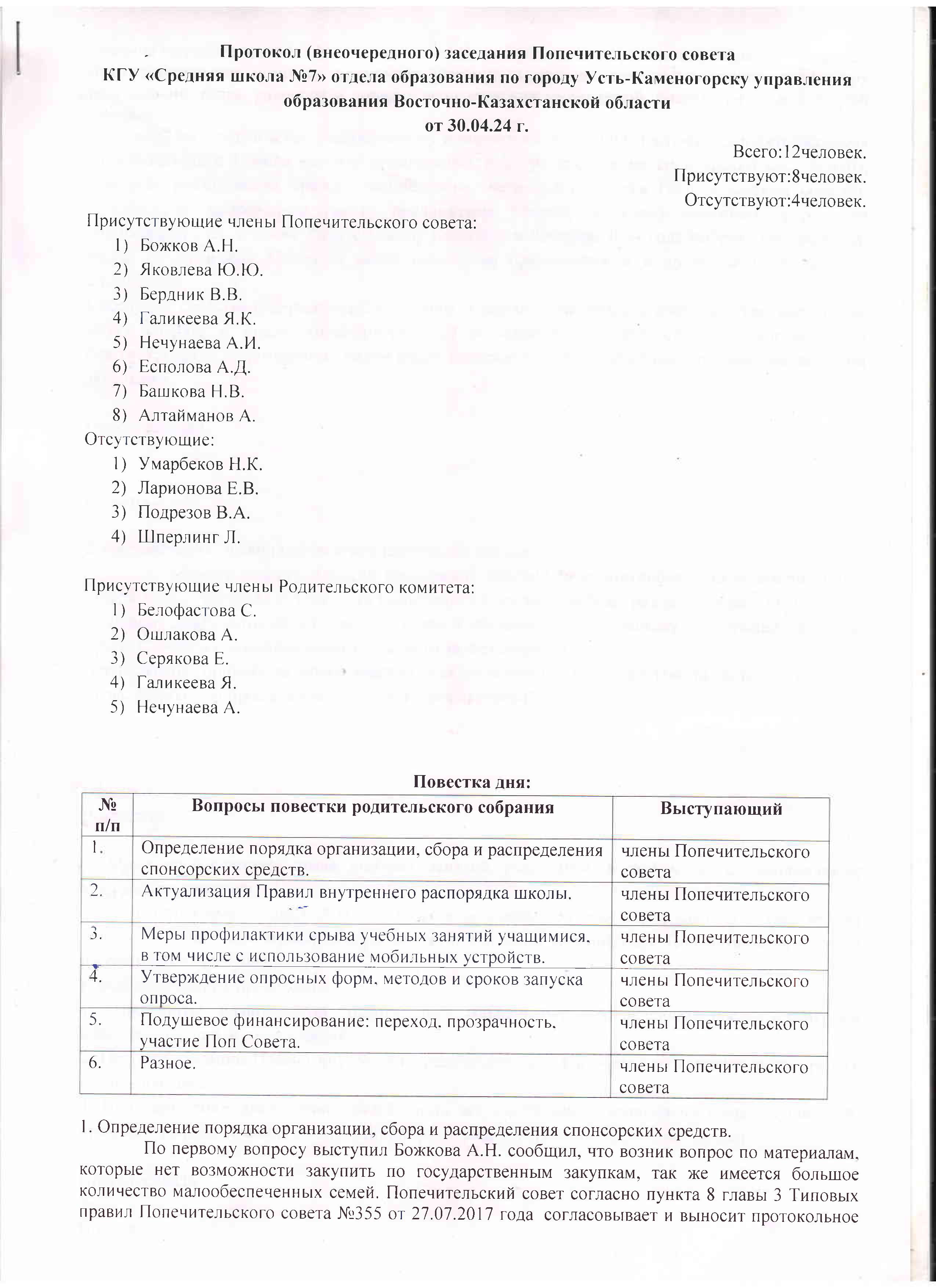Заседание Попечительского совета от 30.04.2024г. » №7 орта мектебі
