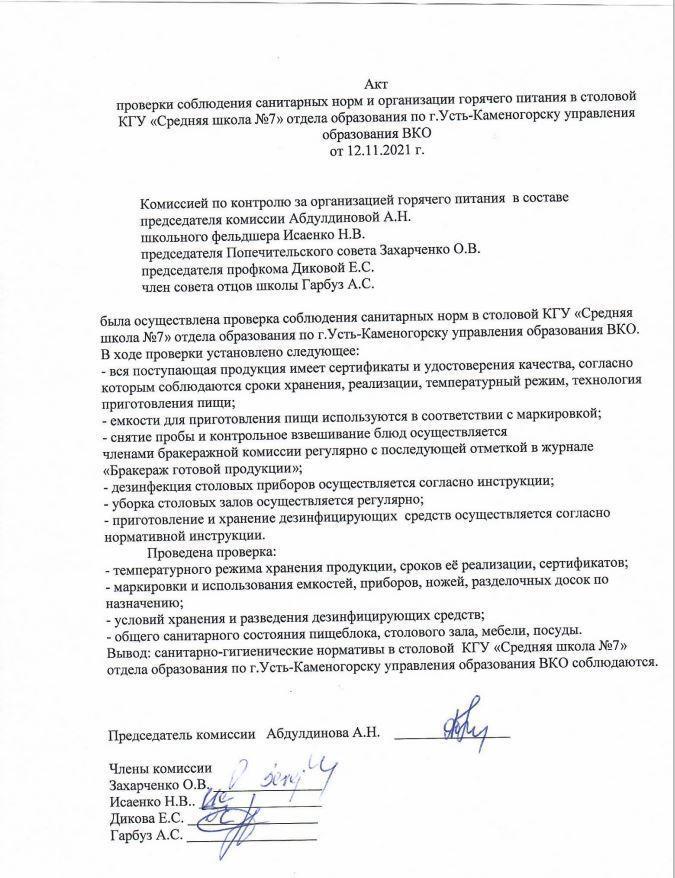 акт бракеражной комиссии 12.11.2021 » №7 орта мектебі