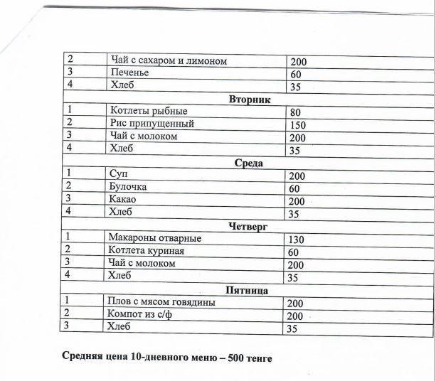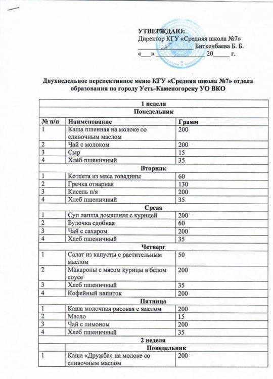 Двухнедельное перспективное меню » №7 орта мектебі